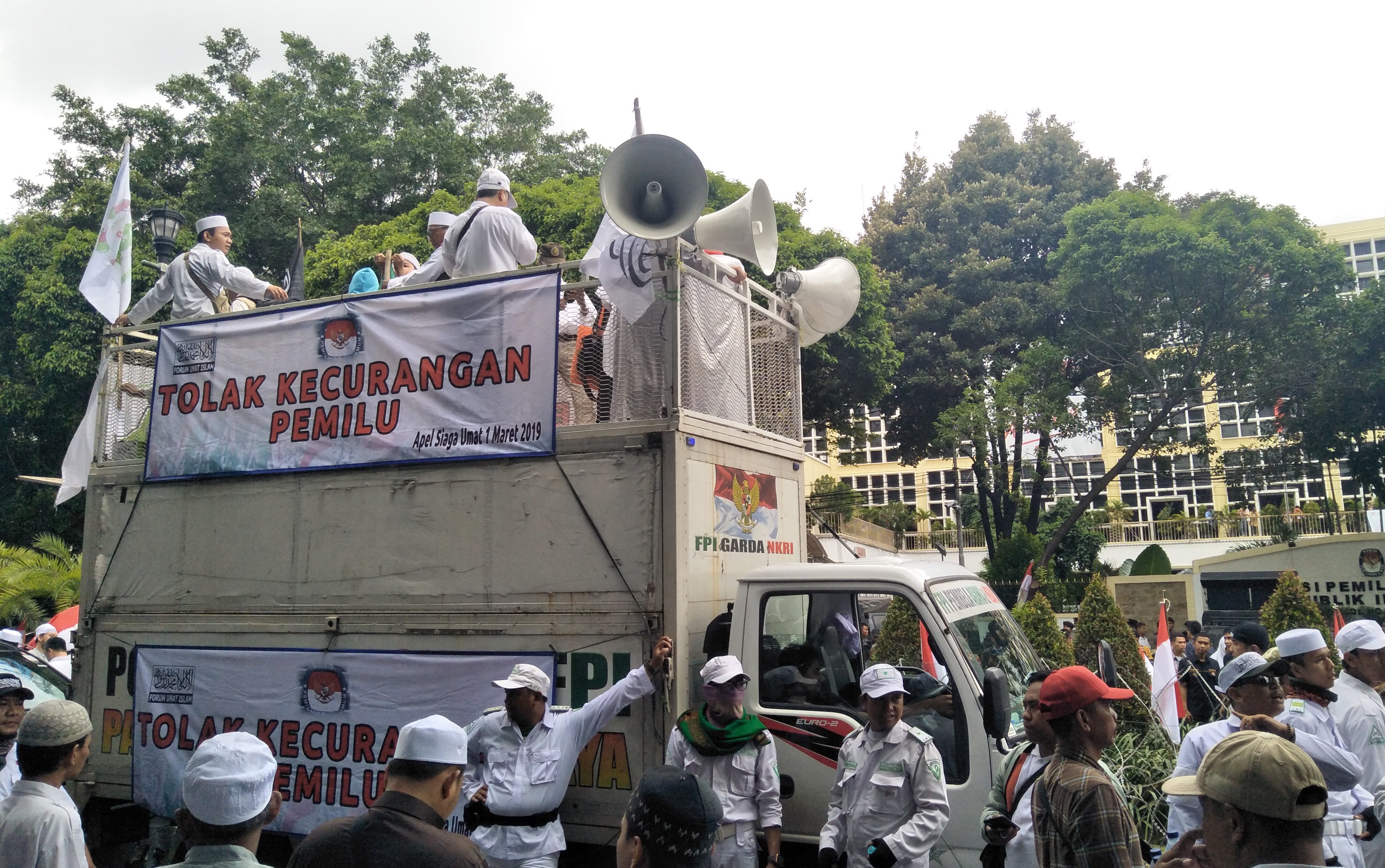 Hal itu disampaikannya diatas mobil komando dalam aksi massa Apel Siaga Umat Forum Umat Islam (FUI) di kantor Komisi Pemilihan Umum (KPU), di Jalan Imam Bonjol, Menteng, Jakarta Pusat, Jumat (1/3).Â