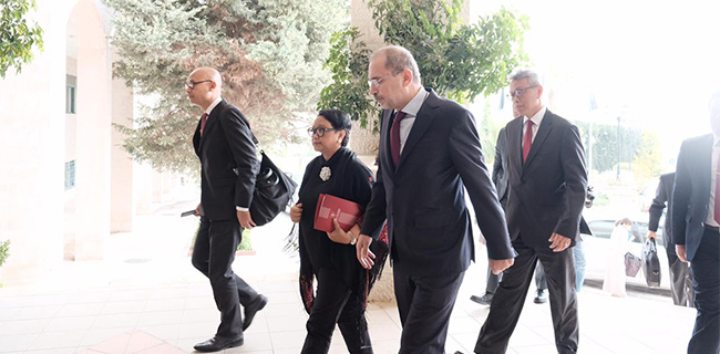 Pembahasan berlangsung dalam pertemuan Retno dengan Menteri Luar Negeri Yordania, Ayman Safadi, di Amman, Selasa (5/3). Kunjungan Retno sendiri berlangsung kurang dari 12 jam.