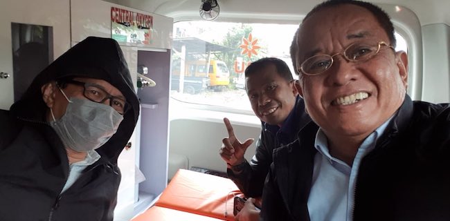 Keduanya, menumpang sebuah ambulans. Dalam foto yang beredar, mereka tampak duduk di kabin belakang biasa tempat mengangkut pasien.