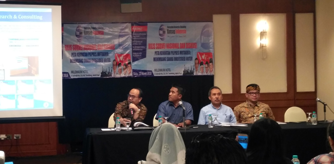 Begitu hasil dari lembaga survei Konsep Indonesia (Konsepindo) yang disampaikan Direkturnya Veri Muhlis Ariffuzaman saat merilis di Hotel Millenium, Jakarta Pusat, Rabu (13/3).