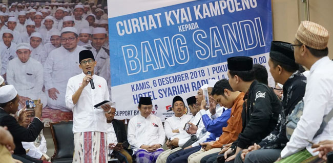 Sandi berharap agar doa dari orang tua ini bisa memberikan kelancaran saat menghadapi debat menghadapi cawapres nomor urut 01, KH Maruf Amin.