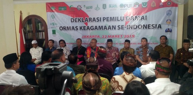 "Tujuan dilaksanakan Deklarasi Pemilu Damai 2019 oleh ormas keagamaan se-Indonesia tiada lain agar pemilu sesuai dengan azas langsung, umum, bebas, rahasia, jujur, adil, aman, tertib, dan damai," jelasnya.
