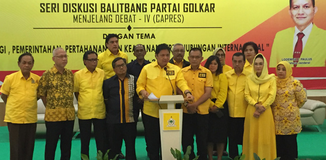 Namun, Ketua Umum Partai Golkar, Airlangga Hartarto tidak sepakat dengan itu. Baginya, petahana, Joko Widodo (Jokowi) sudah terbukti kerja nyatanya dalam menangani isu pertahan dan keamanan.