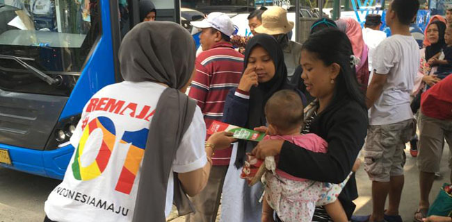 Hal ini yang dilakukan Relawan Milenial Jokowi Maruf Amin (Remaja) dengan terjun langsung ke lapangan menyosialisasikan pasangan nomor urut 01, Jokowi-Maruf kepada masyakat luas.