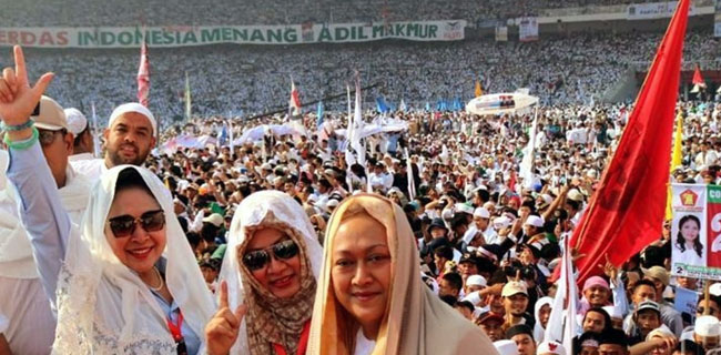 Sebelum subuh, tepatnya pukul 03.45 WIB, master of ceremony (MC) mengumumkan kehadiran Mbak Tutut. Emak-emak di sekujur bagian dalam Stadion GBK merespon dengan teriakan Allahu Akbar.