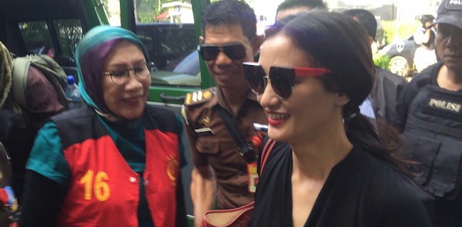 Kantor Berita Politik RMOL, Ratna tiba di lokasi dengan menggunakan rompi tahanan, lengkap dengan jilbab berwarna hijau tosca bercampur ungu sekira pukul 08.00 WIB tadi.