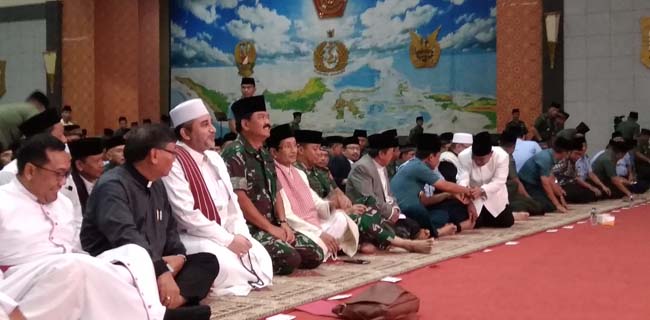 "Para tokoh lintas agama dan prajurit TNI bersatu dan berdoa bersama memohon kepada Tuhan yang maha kuasa untuk memberikan kekuatan dan keteguhan kepada TNI dalam menjaga dan mengamankan NKRI dalam pelaksanaan Pemilu 2019," ujar Hadi.