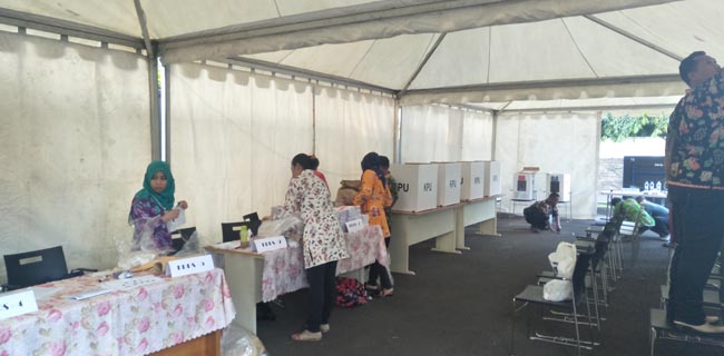 Kantor Berita Politik RMOL, Rabu (17/4) pukul 06.55 WIB beberapa petugas TPS tampak menggunakan batik, dan sibuk merapikan surat suara dan juga daftar hadir pemilih.