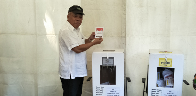 Basuki hadir ke TPS dengan menggunakan topi hitam, mengenakan atasan putih dan celana hitam. Ia hadir bersama istri, Kartika Nurani dan cucunya dengan yang tiba pukul 08.40 WIB.