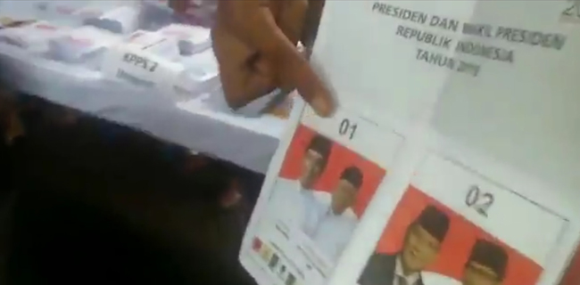 "Wahai @KPU_ID @bawaslu_RI, saya mendapatkan laporan video dari bawah di Sekayu, surat suara Pilpres sudah dicoblos sebelum pencoblosan untuk 01 (Jokowi-Maruf). Mohon dicek..!!" tulisnya.