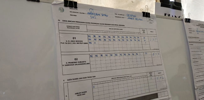 Perhitungan suara di Tempat Pemungutan Suara (TPS) Wdiya Chandra, Senyan, Jakarta Selatan, telah selesai.