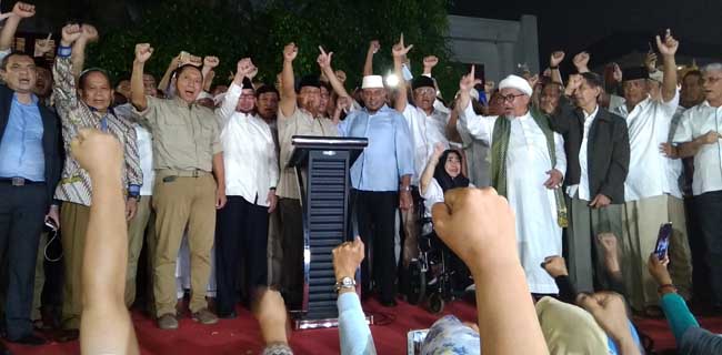 "Koalisi Indonesia Adil dan Makmur Prabowo-Sandi, dan semua relawan tidak ingin Indonesia terpecah belah. Jangan kita gunakan cara di luar hukum karena kita sudah menang, rakyat bersama kita," tegasnya disambut sorak sorai massa pendukung.