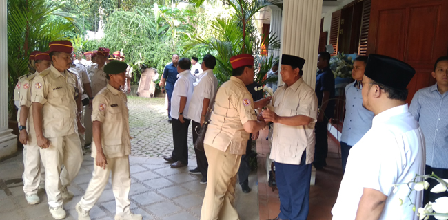 Para purnawirawan dari berbagai kesatuan di TNI itu tiba dan memberi hormat serta ucapan selamat kepada Prabowo yang menyatakan unggul pada Pilpres 2019.