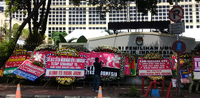 gat. KPU Cuccok deh," tulis salah satu karangan bunga itu.