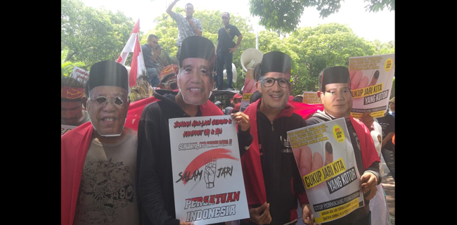 Dalam aksinya, empat orang aktivis AMP mengenakan topeng dua paslon Jokowi-Maruf dan Prabowo-Sandi sambil berangkulan membawa bendera merah putih. Pesan dan harapannya, setelah Pilpres 2019 berlangsung kembali berangkulan.