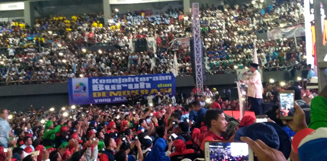 Pidato Prabowo itu disampaikan di hadapan 50 ribuan buruh. Mereka berasal dari sembilan organisasi buruh yang berada di bawah Konfederasi Serikat Pekerja Indonesia (KSPI).