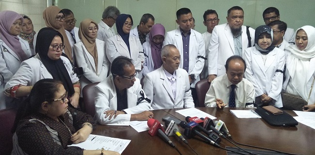Pernyataan sikap dibacakan oleh Ahli Manajemen Rumah Sakit sekaligus anggota Komunitas Kesehatan Peduli Bangsa, dr. Bakta, yang didampingi oleh pengacara kondang Elsa Syarief, dr. Zulkifli S. Komei, dr. Handayani serta dokter lainnya yang hadir.