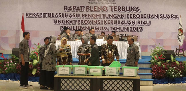 Berdasarkan rapat pleno, pasangan calon presiden dan wakil presiden nomor urut 01, Jokowi-Ma'ruf Amin unggul di lima kabupaten/kota dari tujuh kabupaten/kota yang ada di Provinsi Kepri. Dari hasil pleno tersebut paslon capres cawapres 01 unggul dibandingkan 02 untuk Kota Tanjungpinang, Karimun, Bintan, Lingga dan Anambas.