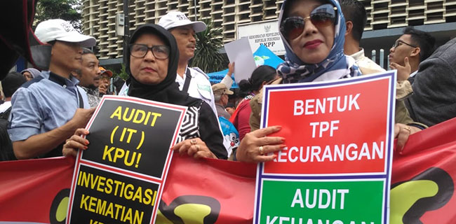 Selain itu, terlihat pula berbagai macam tulisan pada spanduk yang berisi tuntutan-tuntutan untuk Badan Pengawas Pemilu (Bawaslu), seperti halnya soal IT KPU yang sempat diisukan diretas, hingga kasus