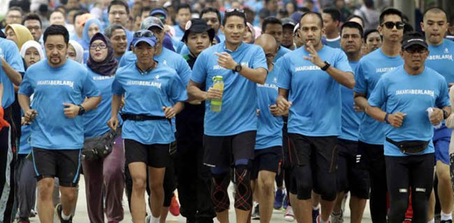 "Warga Jakarta yang mau ikut ngabuburit sambil lari bareng di sore hari, yuk kita ngumpul jam 15.30 di Rumah Siap Kerja Jalan Wijaya I No 26, Jakarta Selatan," ajak Sandi di akun Twitternya, Minggu (12/5).