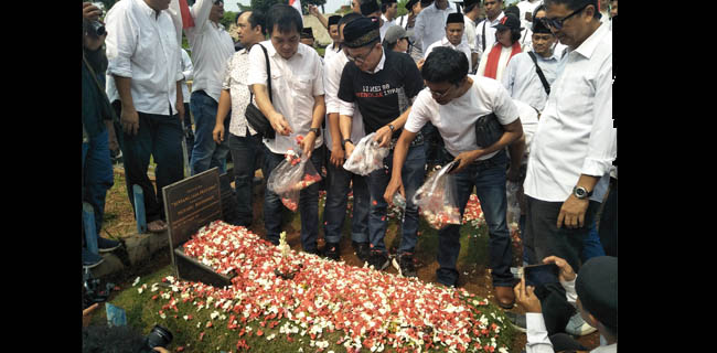Kantor Berita Politik RMOL di lokasi, para alumnus itu kompak mengenakan kemeja warna putih. Mereka mengelilingi makam dua pejuang reformasi, Elang Mulia Lesmana dan Heri Hartanto, sambil menaburkan bunga merah putih.