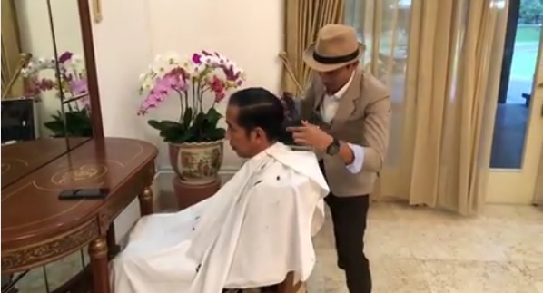 Dalam unggahan video di media sosial pribadinya, Kamis (30/5), tampak seorang tukang pangkas sedang merapikan rambut orang nomor satu di Indonesia itu.