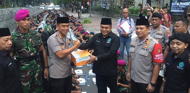 Kelompok silat dari Nahdlatul Ulama itu buka puasa bersama dengan sejumlah aparat TNI-Polri yang telah menjaga demokrasi di Gedung Mahkamah Konstitusi (MK).