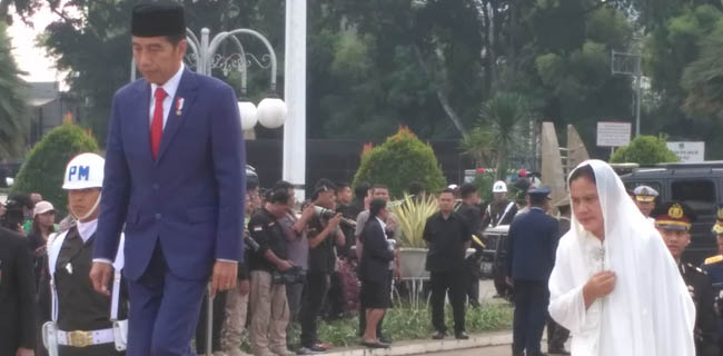 Pantauan redaksi, Jokowi tiba di TMP Kalibata sekitar pukul 13:40 WIB. Jokowi mengenakan jas berwarna biru bersama istri langsung menuju lokasi pemakaman Ani Yudhoyono yang berada di sebelah makam Istri BJ Habibie.