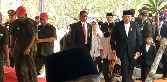 Tak hanya itu, saat berjalan menuju lokasi penguburan, Ketua Umum Demokrat itu juga memilih berjalan menggandeng tangan cucu pertamanya, Almira Tunggadewi Yudhoyono.
