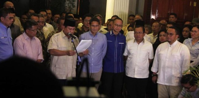 Calon Presiden nomor urut 02, Prabowo Subianto mengumpulkan petinggi partai politik yang tergabung dalam Koalisi Indonesia Adil Makmur pengusung Prabowo Subianto-Sandiaga Uno.