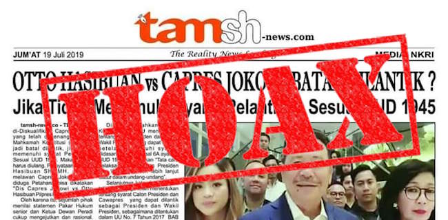 “Ini hoax. Saya sendiri menyatakan pilpres sudah selesai. MK (Mahkamah Konstitusi) sudah memutuskan sengketa hasil pilpres. KPU (Komisi Pemilihan Umum) sudah menetapkan hasil pilpres,†kata Otto dalam perbincangan dengan redaksi beberapa saat lalu.