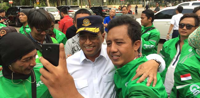 Kantor Berita RMOL di lokasi, Budi Karya Sumadi tiba sekitar pukul 16.00 WIB langsung disambut oleh ratusan pengemudi ojol. BKS menyalami satu persatu pengemudi ojol dari Gojek dan Grab, mereka pun berswafoto bersama.