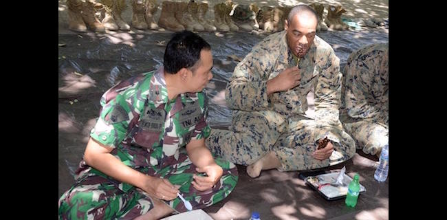 “Marinir Amerika begitu antusias saat makan sate yang dipadu dengan gule yang merupakan masakan asli Indonesia,†tulis keterangan itu.