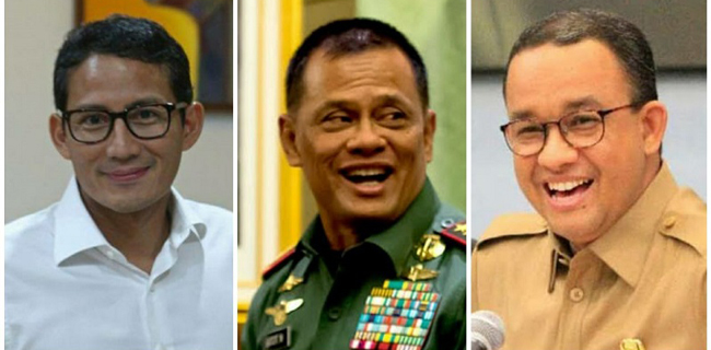 Yaitu, mantan Wakil Presiden Sandiaga Uno, mantan Panglima TNI Jenderal (Purn) Gatot Nurmantyo, dan Gubernur DKI Jakarta Anies Baswedan.