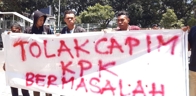 "Tolak capim KPK bermasalah. Karena pimpinan KPK tak boleh tersandera persoalan apapun karena bisa berdampak negatif terhadap eksistensi KPK ke depan," ujar koordinator aksi Debri di depan Gedung KPK.