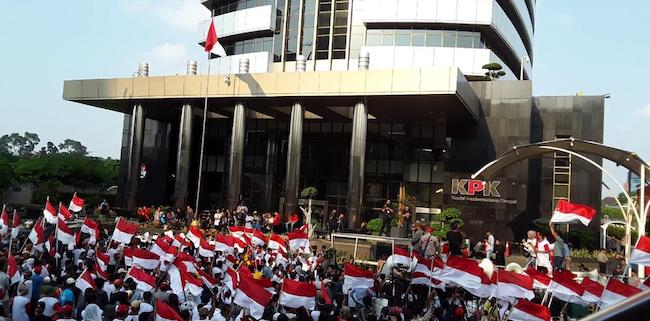 "Langkah DPR sudahl tepat, KPK harus dikuatkan. Jangan sampai KPK menjadi makelar kasus, kawan-kawan," kata orator itu.
