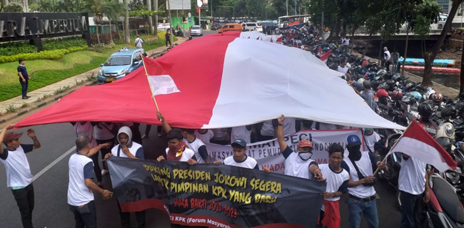 Desakan itu disampaikan massa aksi dari Masyarakat Penegak Demokrasi (MPD), di depan Gedung KPK, Kuningan, Jakarta, Rabu (18/9).