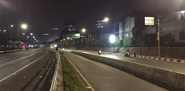 Kantor Berita Politik RMOL di lokasi, sejumlah pengendara sepeda motor dan pengendara mobil telah melintasi jalan tersebut.