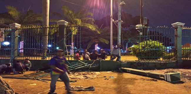Kantor Berita Politik RMOL di lokasi, saat ini pagar tersebut sudah mulai diperbaiki oleh sejumlah tukang las, Selasa malam (24/9).