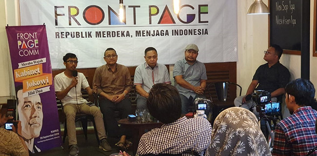 FrontPage Communication bertema "Meraba Wajah Kabinet Jokowi Jilid Dua" di Restoran Dua Nyonya, Cikini, Jakarta, Kamis (26/9).