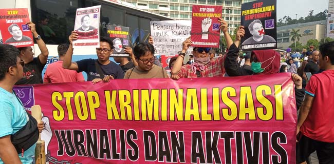 "Karena itu lonceng tanda bahaya sudah kita nyalakan dan kita harus bersama-sama melawan sebuah bentuk kriminalisasi terhadap pers," tambahnya.