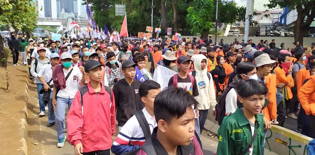 Kantor Berita Politik RMOL sekitar pukul 14.10 WIB, ribuan massa aksi telah tiba di dekat pertigaan Jalan Gatot Soebroto di bawah flyover Jalan Gerbang Pemuda, Jakarta.