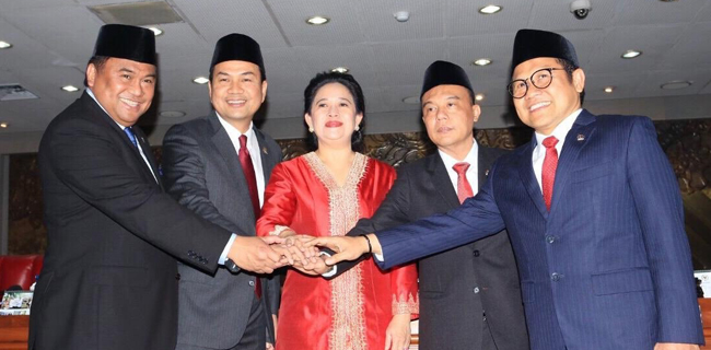 Adapun lima pimpinan DPR periode 2019-2024 yakni Puan Maharani (PDIP) sebagai Ketua DPR, Aziz Syamsuddin (Golkar), Sufmi Dasco Ahmad (Gerindra), Rachmat Gobel (Nasdem), dan Muhaimin Iskandar (PKB) masing-masing sebagai wakil ketua DPR.