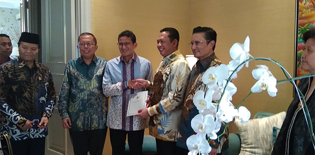 Pimpinan MPR RI bertamu ke kediaman mantan calon wakil presiden, Sandiaga Salahudin Uno di Kebayoran Baru, Jakarta, Senin (14/10).
