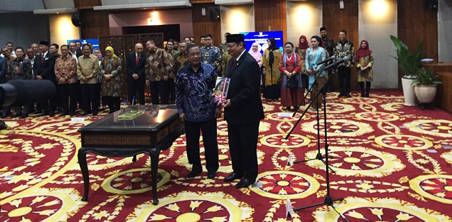 Setelah meminjam pulpen Airlangga, Darmin lantas menandatangi surat tersebut dan menyerahkan jabatannya kepada putra Airlangga.