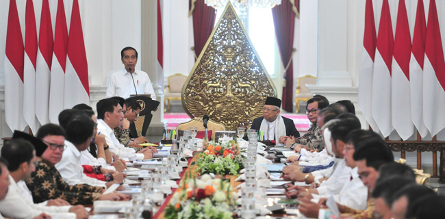 "Ini tolong dicatat karena dalam lima tahun yang lalu ada 1, 2, 3 menteri yang masih belum paham mengenai ini. Jadi dalam setiap rapat, baik rapat paripurna, di dalam rapat-rapat terbatas, di dalam rapat-rapat internal itu ada sebuah payung hukum," kata Jokowi.