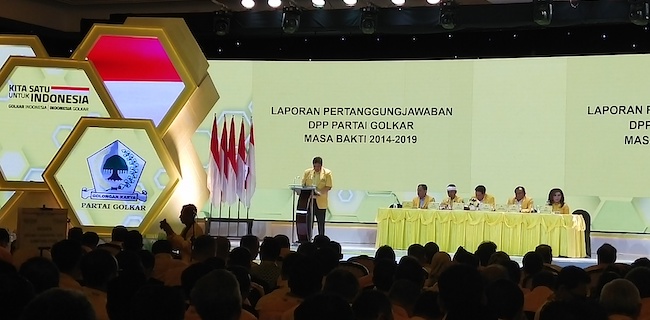 Begitu tegas Ketua Umum Partai Golkar, Airlangga Hartarto saat pemaparan laporan pertanggungjawaban (LPJ) pengurus DPP Partai Golkar periode 2014 hingga 2019.