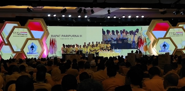 Laporan pertanggungjawaban tersebut dibacakan Ketua Umum Partai Golkar, Airlangga Hartarto dalam forum musyawarah nasional (munas).
