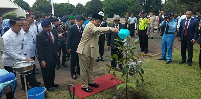 Di sela-sela kunjungan kerjanya, Prabowo Subianto menyempatkan diri menanam pohon Manggis di komplek SMA Taruna Nusantara.