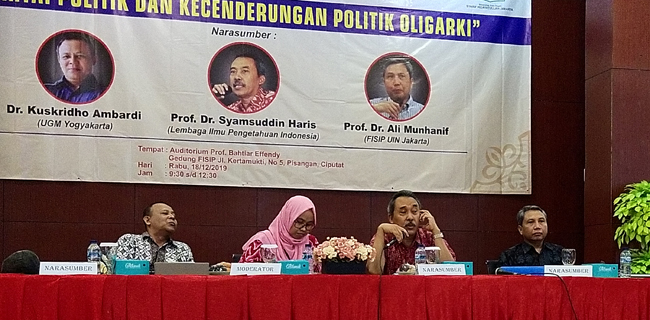 Begitu dikatakan peneliti senior LIPI Syamsudin Haris dalam diskusi akhir tahun FISIP UIN Syarif Hidyatullah Jakarta "Partai Politik Dan Kecenderungan Politik Oligarki", di Auditorium Bahtiar Effendy, FISIP UIN Jakarta, Ciputat, Tangerang Selatan, Rabu (18/12).